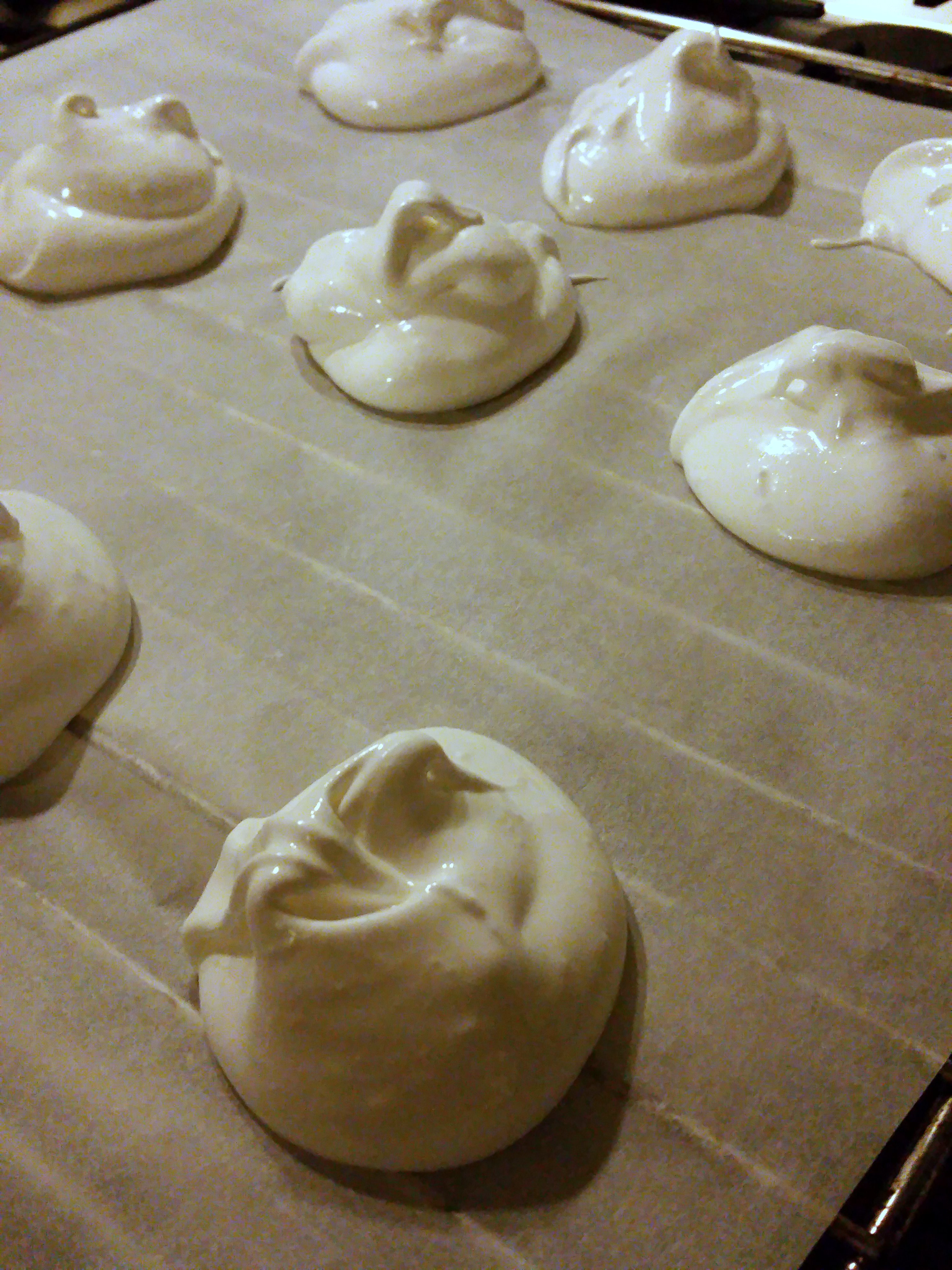 Laat de meringues volledig afkoelen voor je ze van het bakpapier neemt.