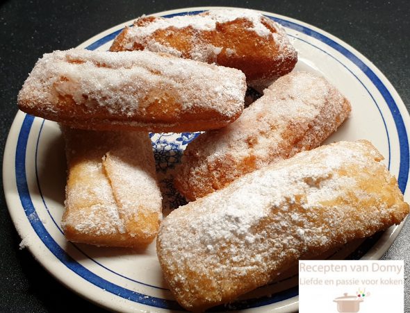 Laat de figuurtjes goed uitlekken op keukenpapier en strooi dan poedersuiker of gewoon fijne suiker erop.