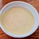 Pureer de eetlepel mango met de mosterd, de yoghurt en de honing.
