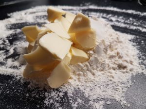 Zet de boter uit de koelkast, 10 minuten van tevoren en snijd hem in blokjes.