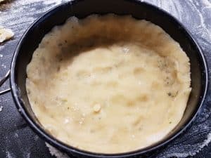 Verdeel de rondjes in de 4 springvormen en druk goed erop, ook aan de zijkanten.