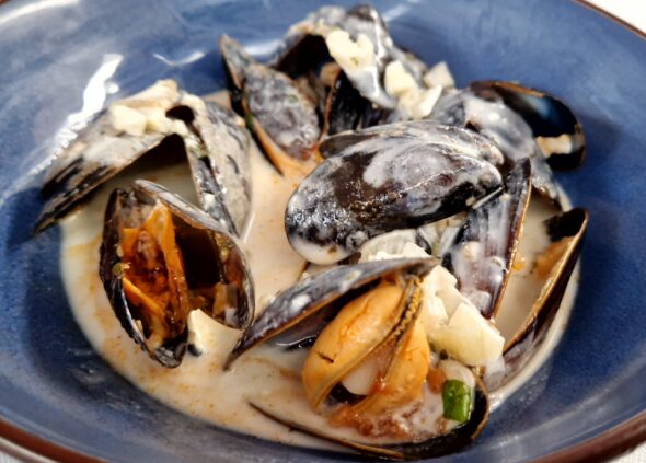 • 4 kg verse mosselen ( 1 tot 1.5 kg mosselen per persoon, afhankelijk van jouw bijgerechten)