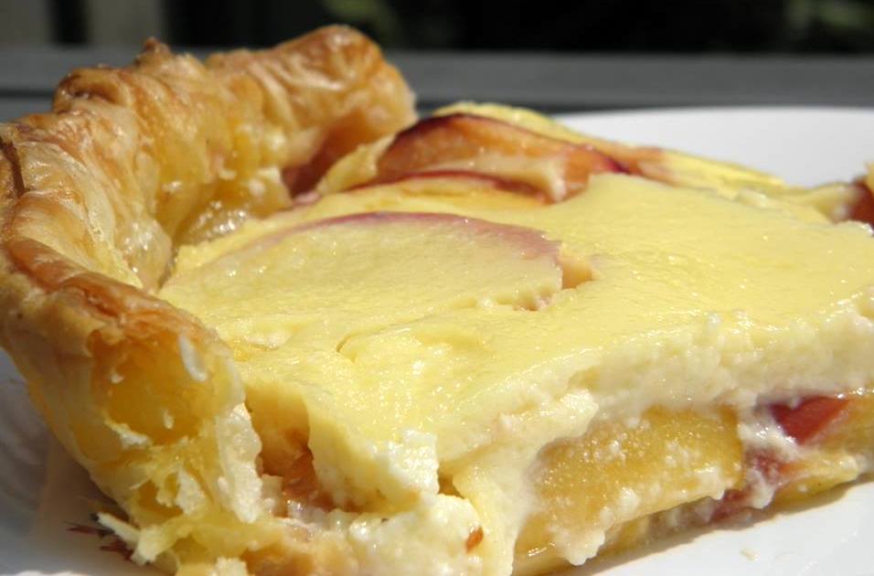 Klop het ei, de room en 50 g suiker los en giet over de taart. Bak de taart nog 10-15 minuten tot de custard gestold is.
