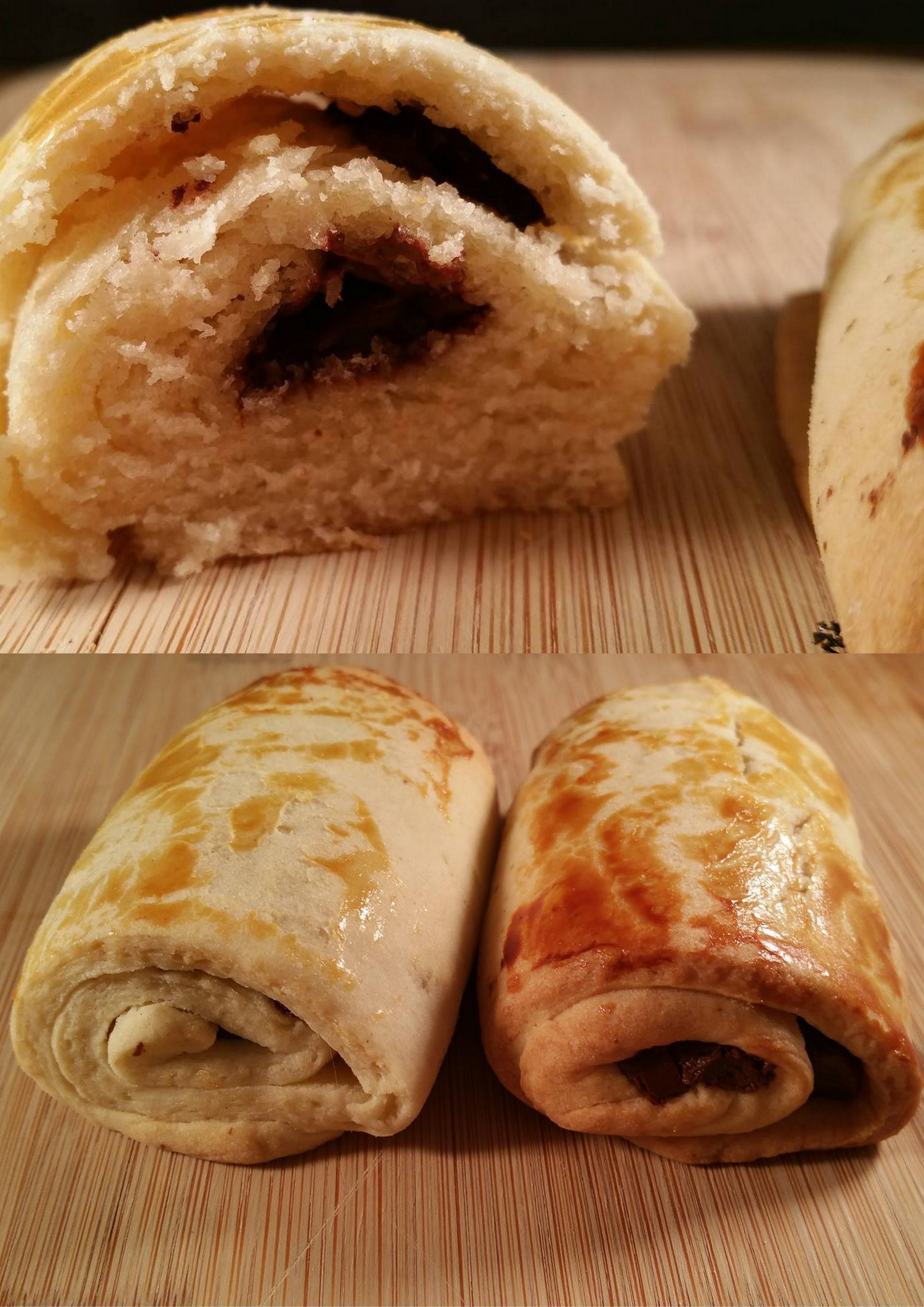 Leeg nog 2 stukjes chocolade op het deeg en rol het broodje op.