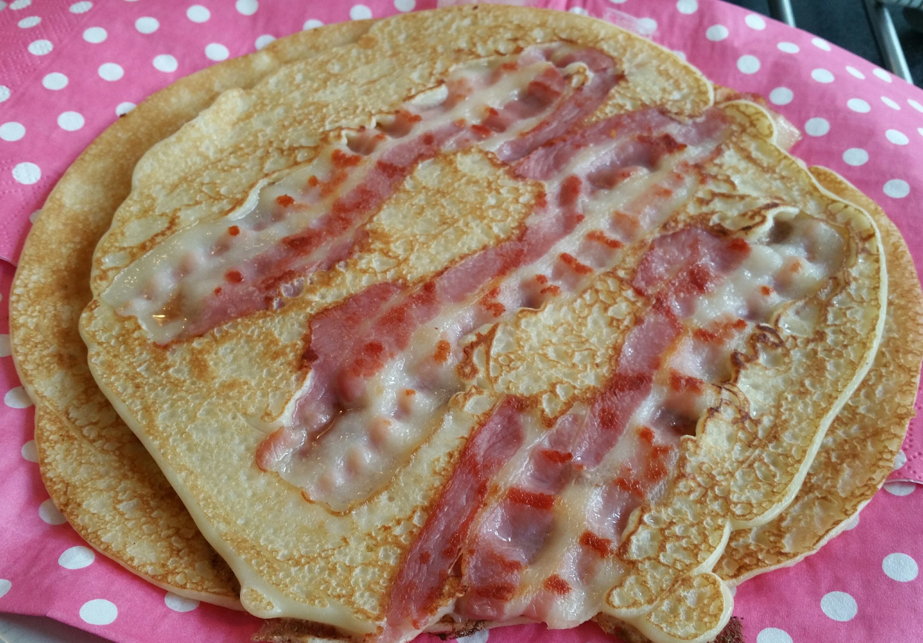 Hier op de foto mijn favoriete pannenkoeken, met spek.