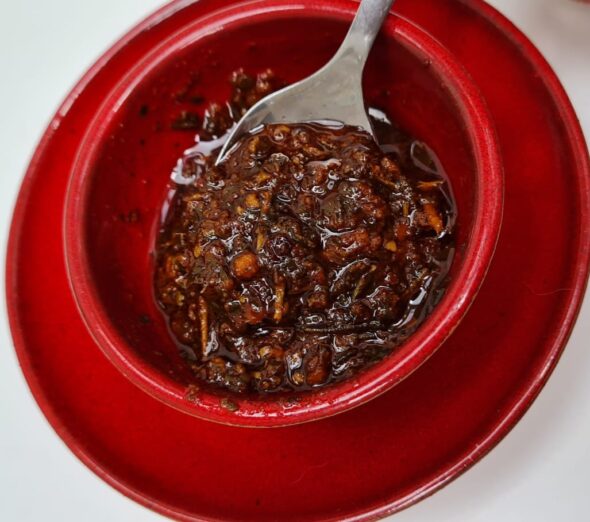 Laat de saus afkoelen en zet het een nachtje in de koelkast.