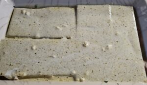 Giet de helft van de pesto saus en de helft van de pijnboompitten erop.