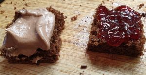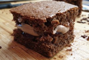 Snijd de cake in vierkanten blokken en pak ze in alu folie in.