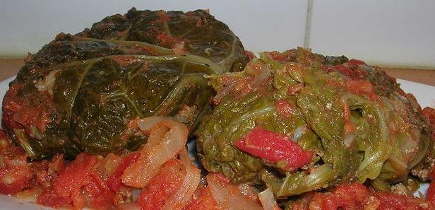 Snijd de mooiste blaadjes uit de kool. 2 X 2 per persoon. Blancheer ze in warme water met zout 3 min. snijd de dikke nerf eraf.