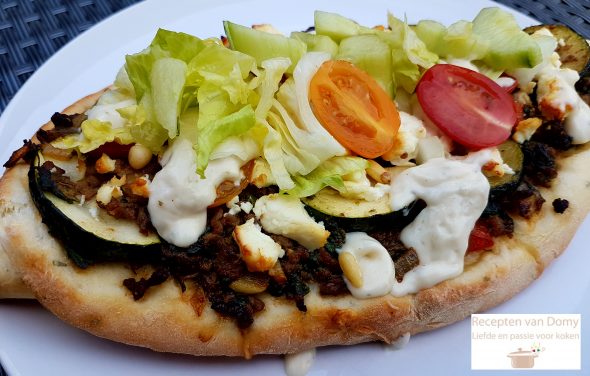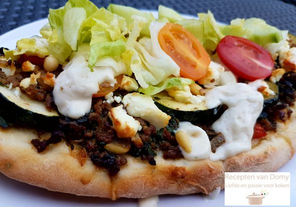 Lekker rijk gevuld en toch lekker fris door de sla en de knoflooksaus bovenop.