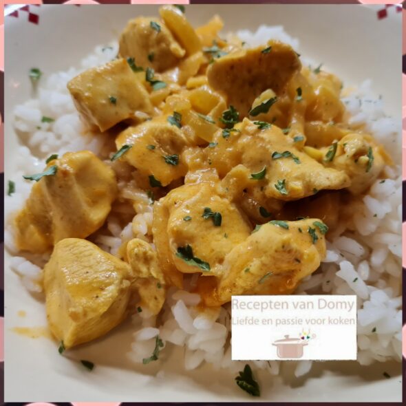 Voeg de kip blokjes toe en bak mee, 10 minuten.