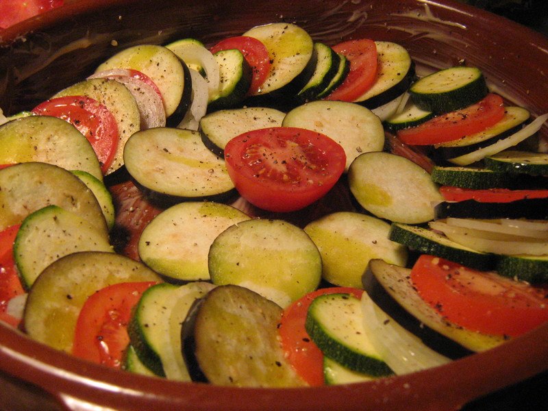 Breng de ratatouille op smaak met zout en versgemalen peper.