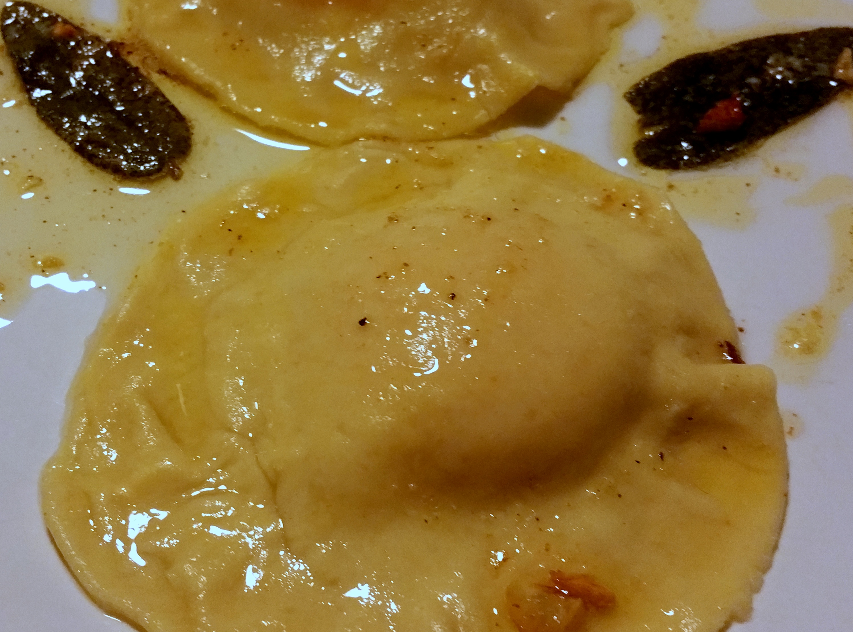 Leeg 2 ravioles per persoon op een bord en serveer met een beetje salie boter ernaast.