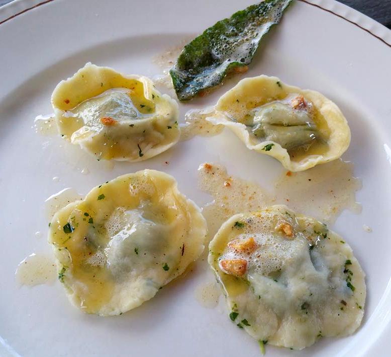 Zet de ravioli, 2 minuten in de magnetron om ze op te warmen, verdeel de salie boter saus erop en serveer meteen.