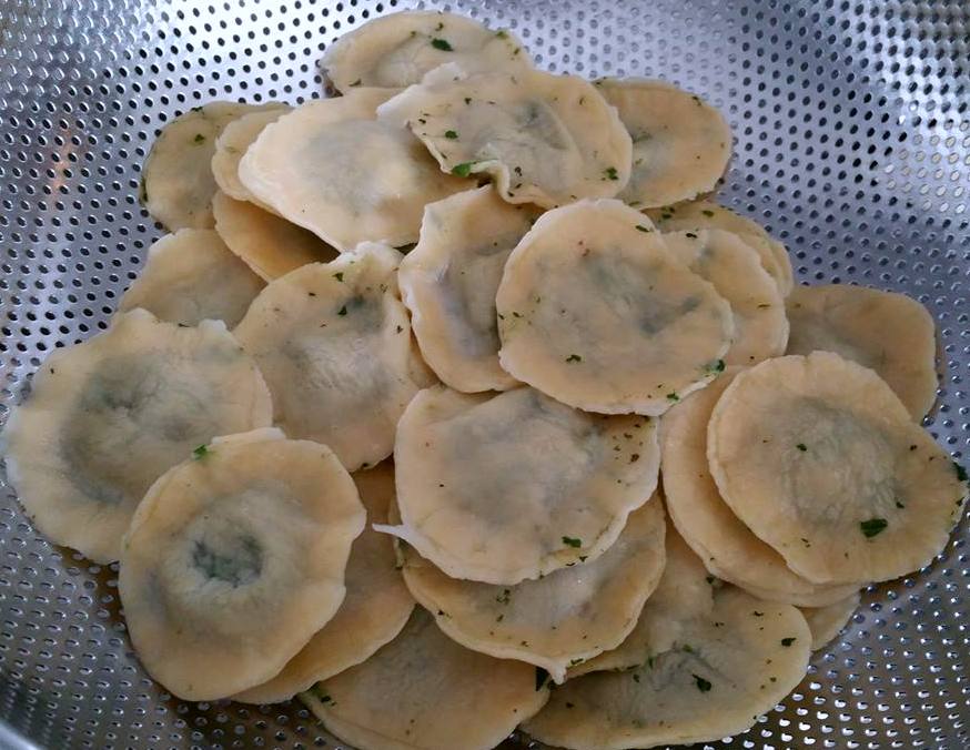 Kook de ravioli een paar minuten in kokend water met zout, tot ze boven komen drijven en laat ze uitlekken.