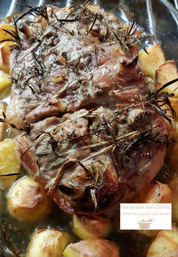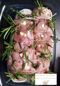Doe een paar inkepingen in het vlees en vul ze met knoflook, rozemarijn of tijm.