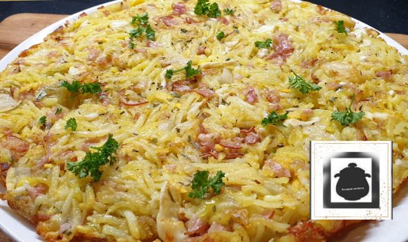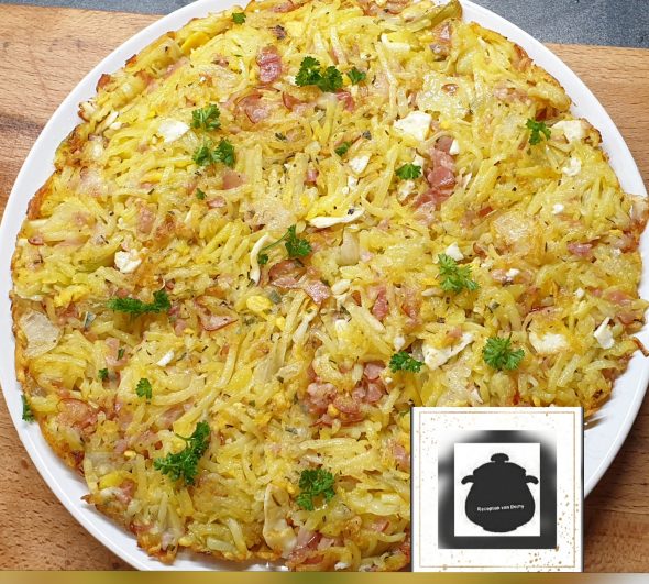 Zet een bord op de rösti, keer hem om.