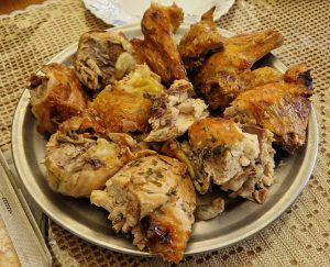 Het vlees kreeg een heerlijk smaak door de bloem, de verse kruiden en de knoflook.