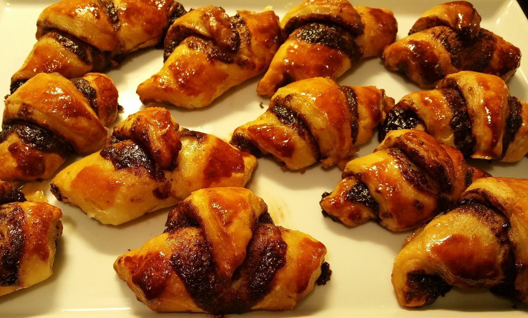 Rugelach (gedraaide broodjes) zijn originele Joodse kleine brioche/koekjes in vorm van kleine croissants.