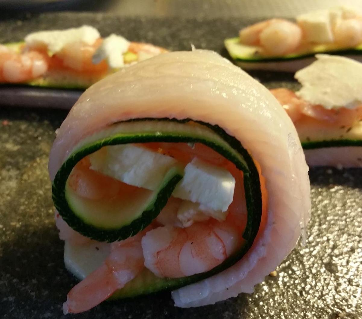 Rol de vis als een rolletje op.