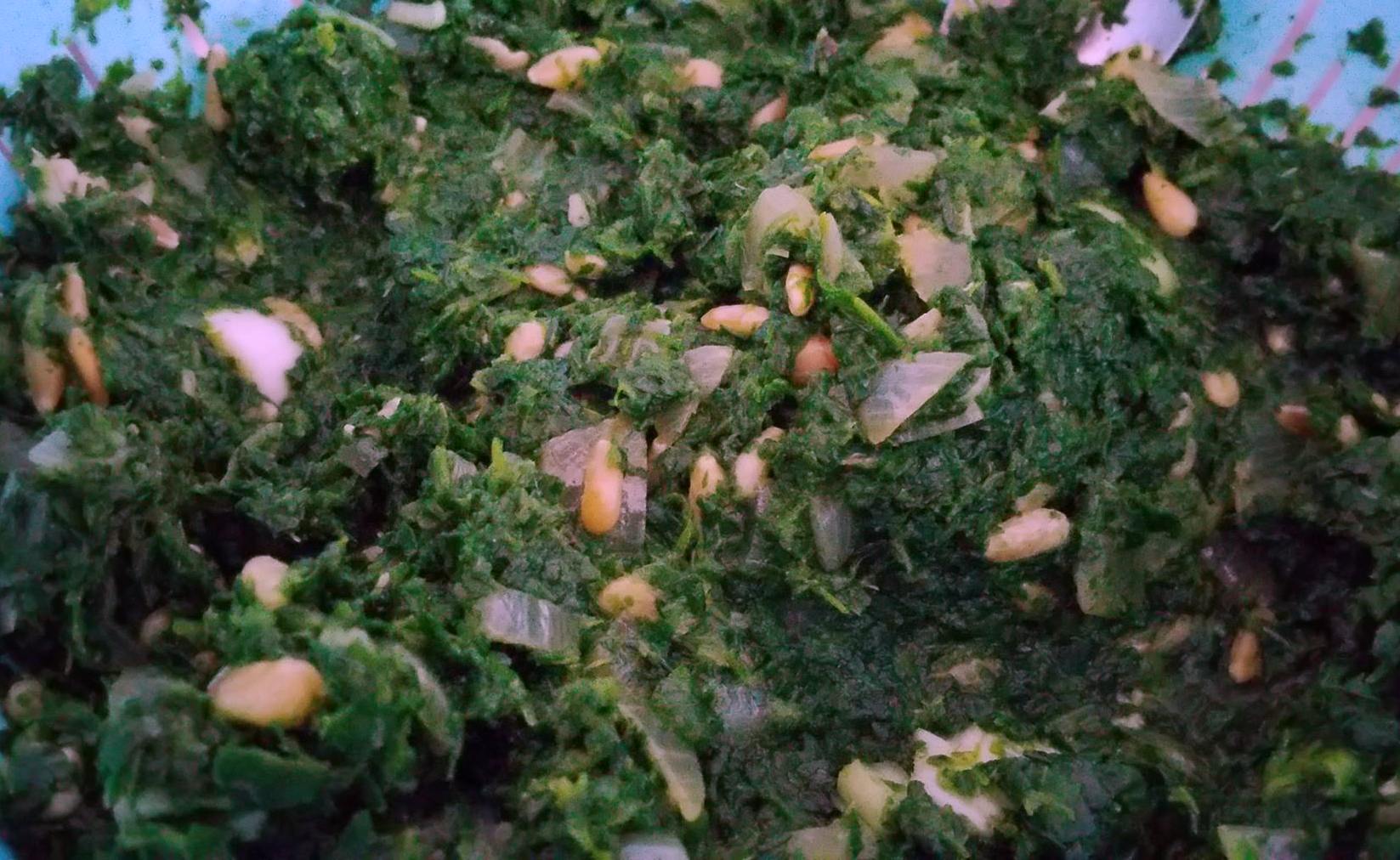Doe het spinaziemengsel in een vergiet en druk zo veel mogelijk vocht er uit.