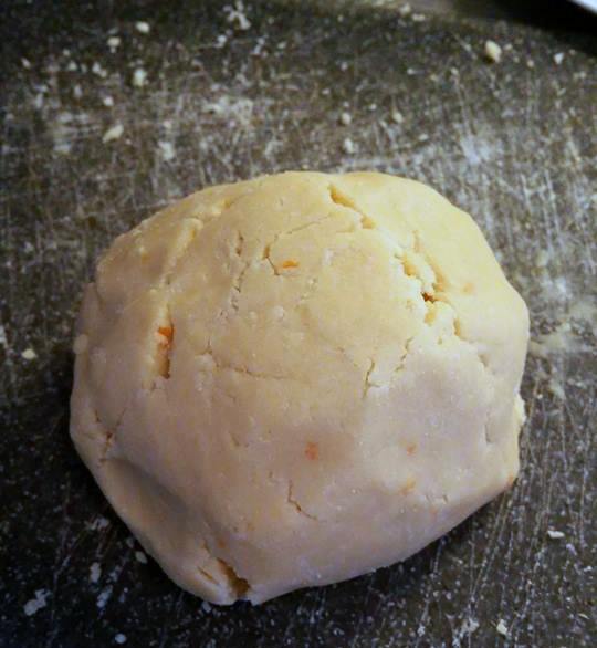 Voeg het los geklopte ei en de rest van de boter toe en blijf kneden totdat je een bal kunt vormen.