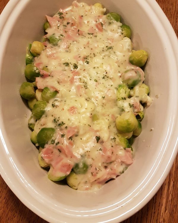Bak de spruitjes ovenschotel in de oven, op 200 graden, 25 minuten.