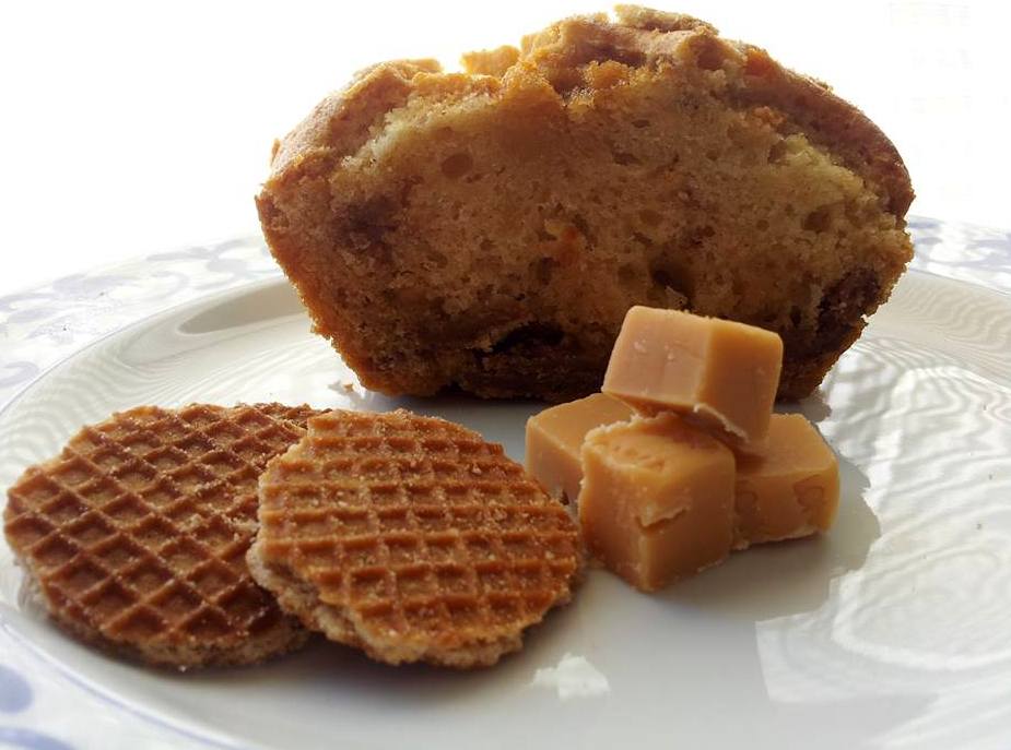 Deze heerlijke cake, heb ik samen met mijn dochter verzonnen. Het was haar idee om stukjes karamel en stroopwafels in het beslag toe te voegen.