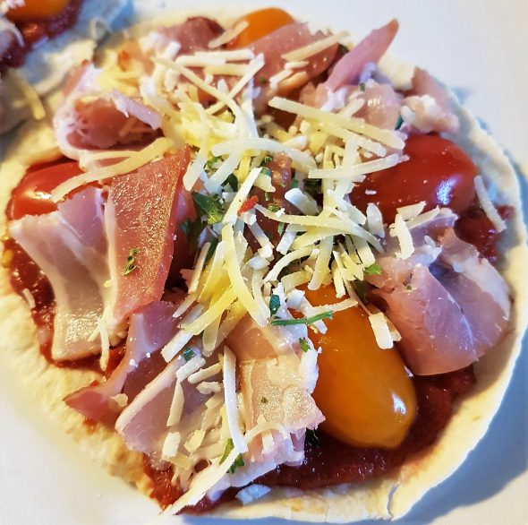 Zoals de Tortizza met salami maar met bacon. Lekker voor de lunch!