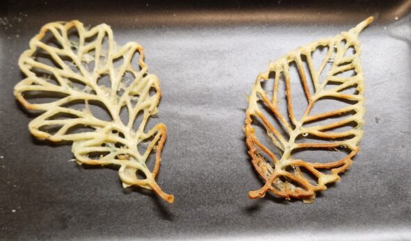 Leg voorzichtig de blaadjes op een bakpapier en laat ze afkoelen.