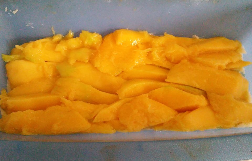 Ik heb zelf twee lagen mango gedaan om de hele mango te kunnen gebruiken.