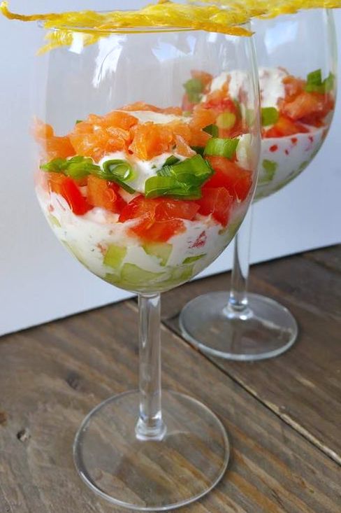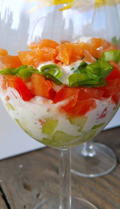 Het is een hapje, salade, toetje of voorafje in een glas.