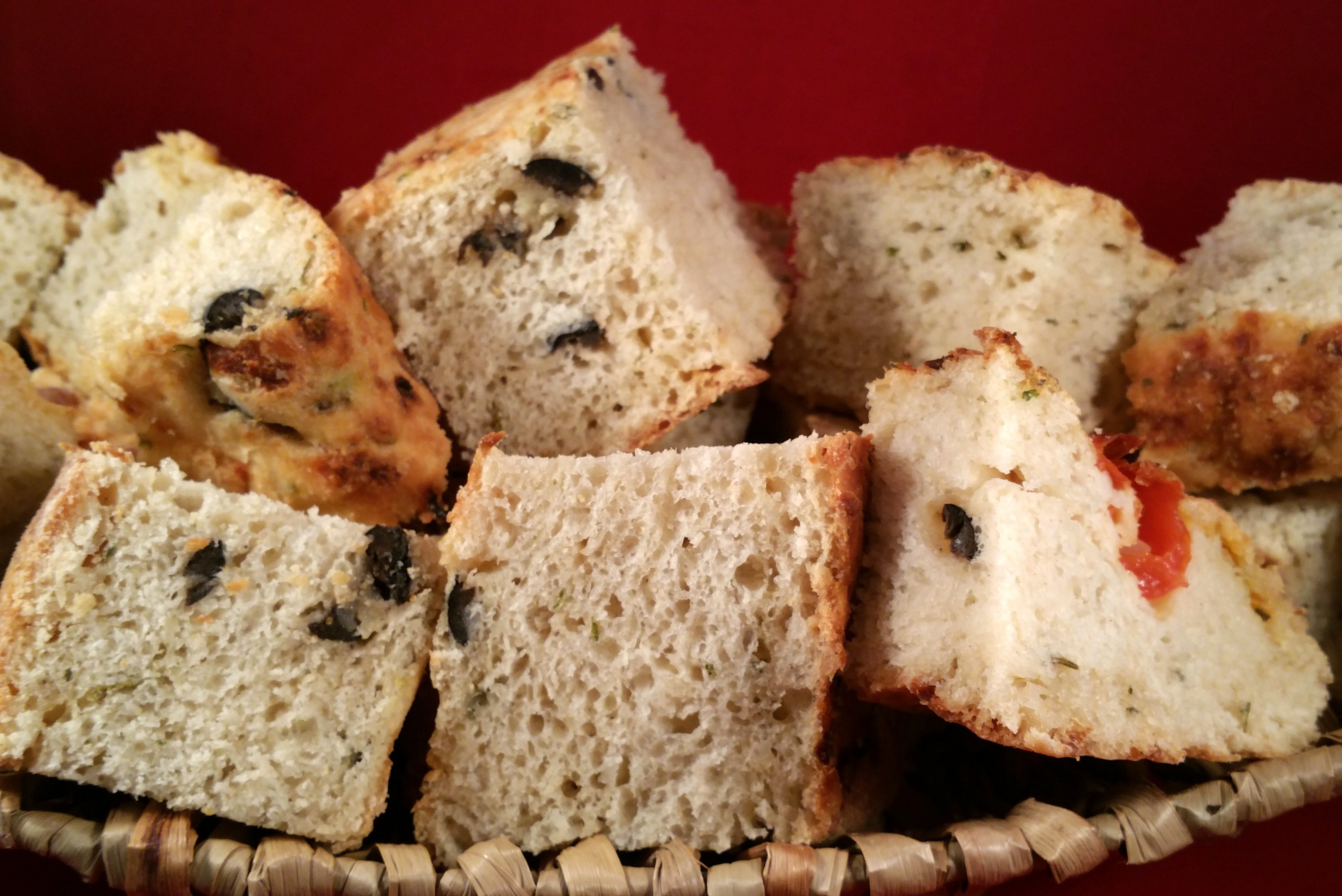 Bak de ui, de knoflook en de olijven samen, in olijfolie, een paar minuten op laag vuur en laat ze afkoelen.