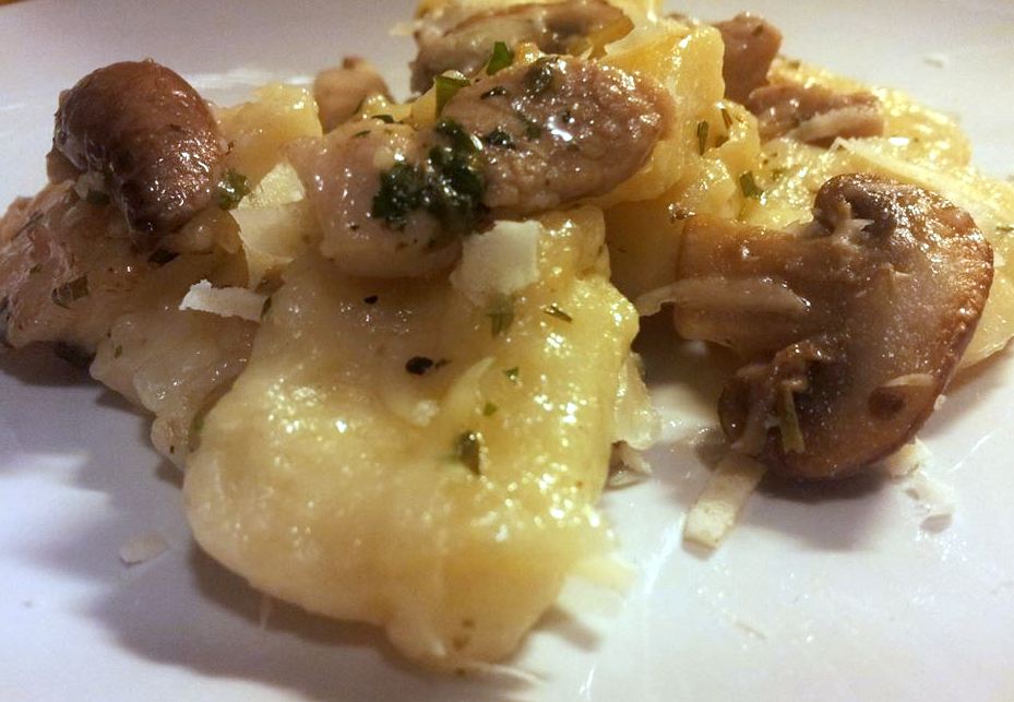 Voeg nu de truffel olie en de gnocchi en bak nog op hoog vuur, een paar minuten.