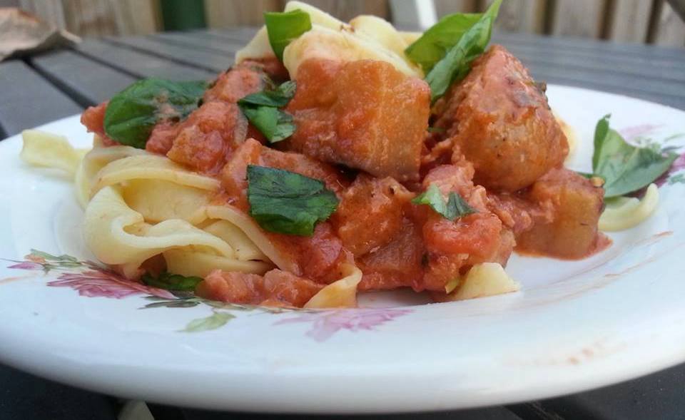 Doe de laatste 2 minuten de basilicumblaadjes erbij.