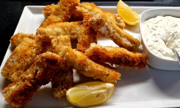 Bak de vis in de olie, draai ze regelmatig, 15 minuten of Leg de vissticks op de bakplaat En bak ze in de oven 15 à 20 minuten krokant en goudbruin.