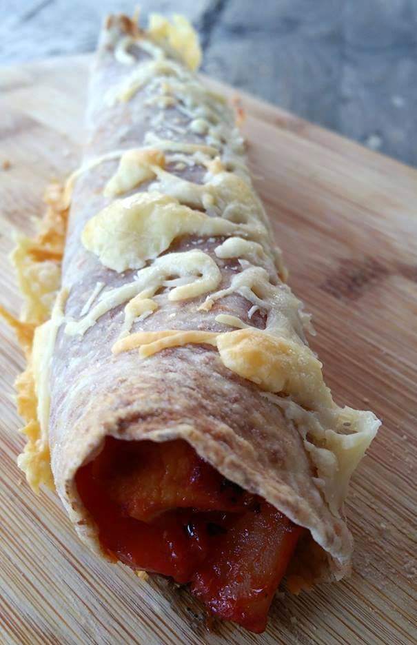 Vul de wraps met de Hawaii saus, rol ze op en leg ze in een ovenschaal.