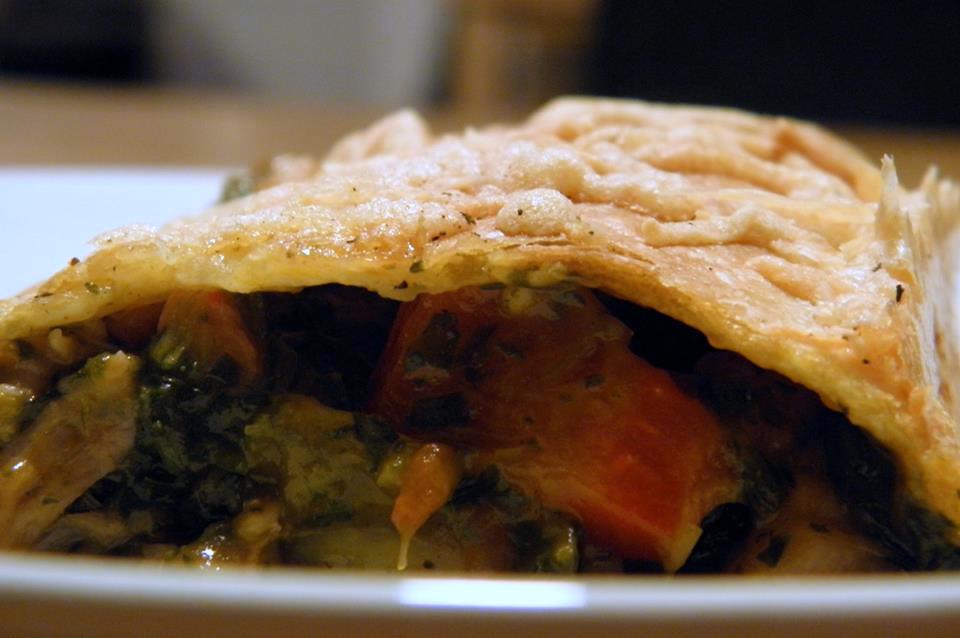Vul een wrap met het spinazie mengsel en vouw het dicht.