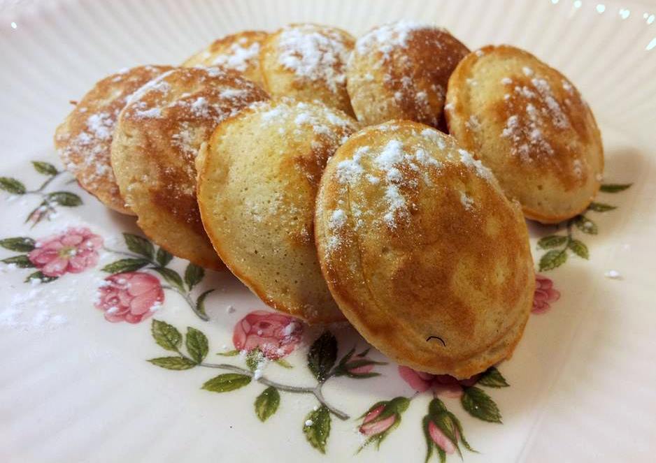 Verdeel de poffertjes over de borden, bestrooi met poedersuiker en/of leg een klont boter erop en/of besprenkel met stroop.