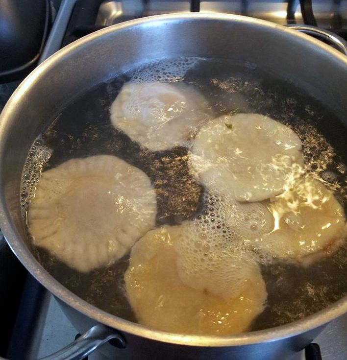 Kook de ravioli, om de beurt, in ruim kokend water met zout, tot ze boven water komen drijven.