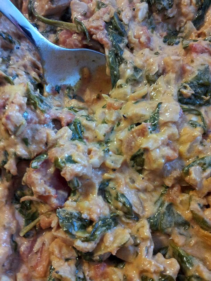 Dit zelf verzonnen recept was heel lekker maar toch missen we een gekruide tomatensaus onder de bechamel.