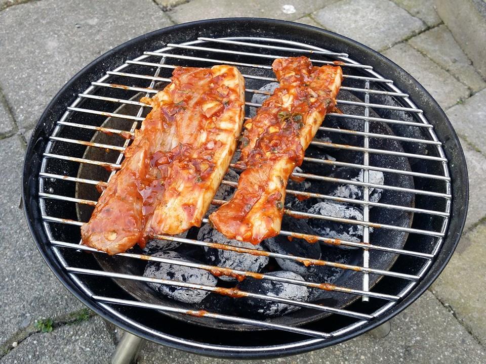 Wel opletten dat het vlees niet te dichtbij de grill van de barbecue komt te liggen om te voorkomen dat het snel zwart wordt.