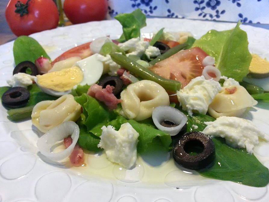 Spoel de sperziebonen en de tortellini in een zeef onder koud water af en laat ze goed uitlekken.